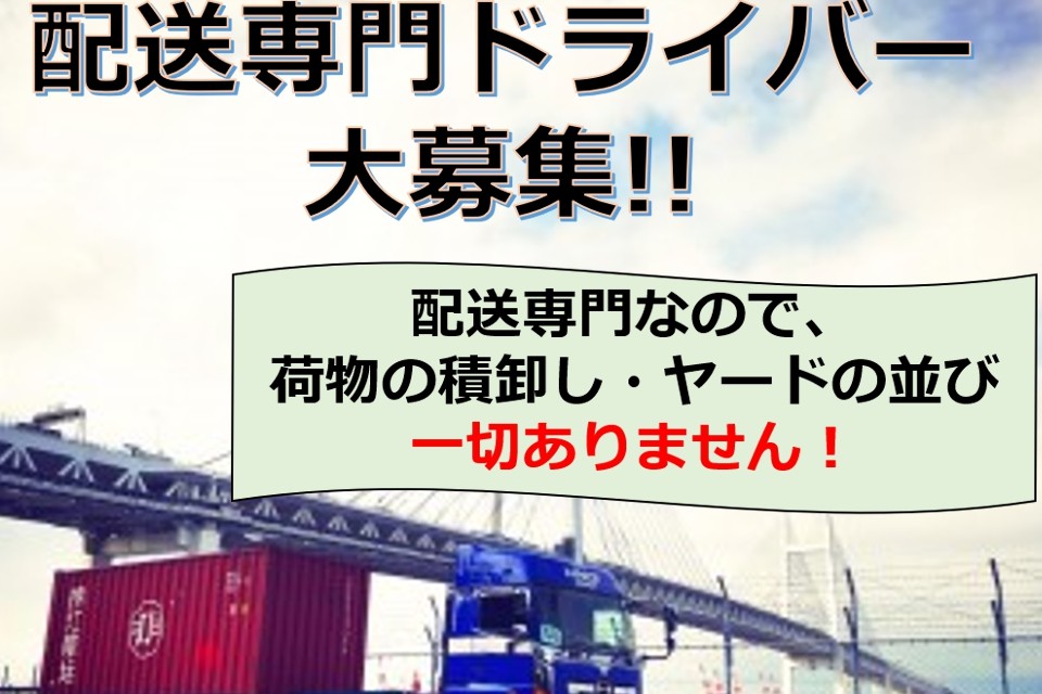 【海上コンテナドライバー】 東京港のコンテナ車庫から近郊配送先まで、 1日に2、3回海上コンテナの配送を専門に行って頂きます。 <★★★混雑した大井ふ頭内のヤード並びはありません★★★> <★★★積み下ろし作業も一切ありません★★★> <★★★ヤードの知識、必要ありません★★★> 決められた時間内でのお仕事です!