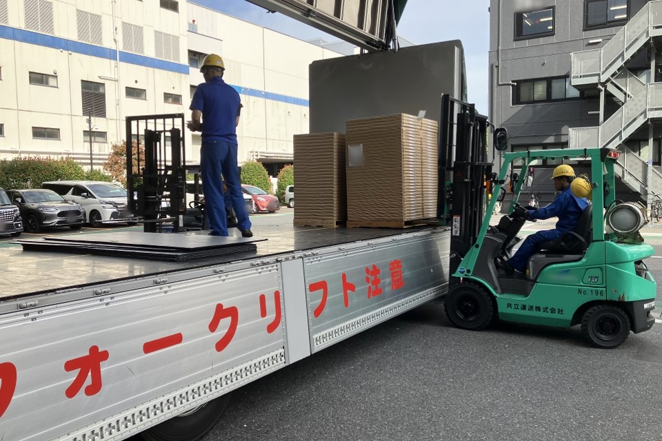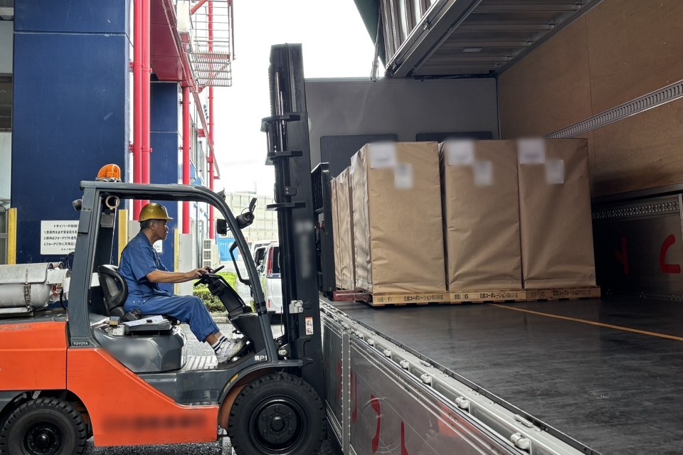 パレット輸送、フォークリフトを使っての積み作業なので、力仕事はほぼありません。