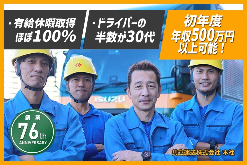 【平均勤続15年以上!もっと早く入社すればよかったの声も♪その定着率にはワケがある!】★土日祝日休み&来年度年間休日120日以上&日勤のみで年収600万円を目指せる!★パレット積み降ろしで身体の負担少なめ★ドライバーの半数は30代!★1950年創業の安定企業