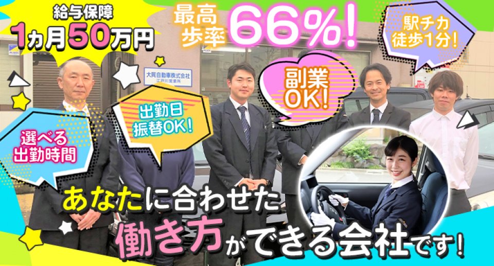 【経験不問で選べる給与保障】1ヶ月50万円or3ヶ月30万円【歩合例を大公開!】会社の特徴ページをご覧ください【他にも好条件が多数!】★隔日・昼・夜日勤あり★完全日曜定休★再雇用75歳まで★最高歩合66%★ノルマ無し【副業/Wワークok!】業界でも珍しい採用スタイルです!
