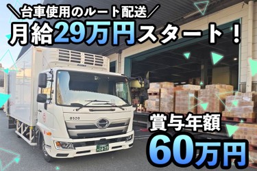 愛知県内の外食産業店舗などへのルート配送をしていただくお仕事です。お弁当やパン、乳飲料など荷物を配送します。基本的には台車を使って移動するので、身体への負担も少なめ◎ルートは決まっているので、一度道を覚えたらスムーズに配送できます!◎車種:中型トラック◎荷物:お弁当やパン、乳飲料など(重くても10kg程度)◎荷役方法:台車を使用◎配送エリア:愛知県内全域◎配送件数:20店舗/1日 ∟夜間・早朝(1回目配送) :8~12店舗(平均10店舗) ∟日中(2回目配送) :8~14店舗(平均10店舗)< 1日のスケジュール例 >▼積み込み作業 仕分けされた商品を積み込みます▼1回目の配送 ルート通りに配送(夜間・早朝または日中)▼休憩 1.5~3時間(営業所に戻って休憩)▼2回目の配送 再度、ルート通りに配送(平均10店舗)▼業務終了 営業所に戻り次第終了!◆全線高速道路使用OK (ETC完備) ◆トラックは頻繁に入れ替え