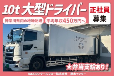 10t大型トラックを使用して冷蔵・冷凍食品のセンター間配送を行っていただきます。